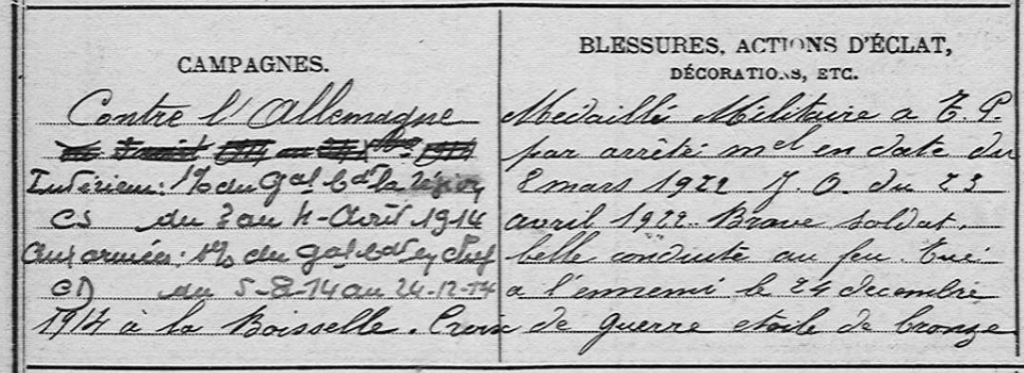 Service militaire du 3 octobre 1910 au 25 septembre 1912 au 64e régiment d’infanterie